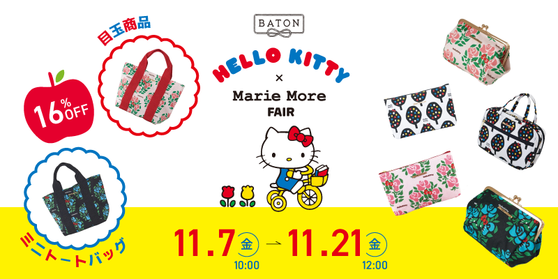 【平日14時までのご注文で当日発送】【 メール便 送料無料 】ハローキティ トートバッグ キティちゃん 大人 かわいい ミニトートバッグ marie more メアリーモア 薔薇柄 ランチバッグにも便利 mm-0033mk-pk
